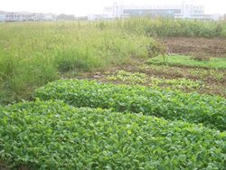In Matsu Islands, the local government established a vegetable farmland at the town center of Nangan.