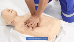 Each round of compressions applies 30 compressions on the lower half of the chest bone (sternum), at an approximate rhythm of nearly 2 per second. After that series, the rescuer looks for the obstructing object and, if it is visible, the rescuer makes a try to extract it, usually by using a finger sweeping. There are no compressions during this step, but, if the removal complicates and takes a lot of time, it may require to repeat compressions at some moments, obviously without causing hindrances to the extraction. The object can be found and removed in this step or not, but this CPR procedure must continue anyway, until the people can breath by themselves or emergency medical services arrive. Next, the rescuer applies a rescue breath, pinching the person's nose and puffing air inside of the mouth. It is recommended, additionally, tilting the person's head up and down, to reposition it trying to open an entrance for the air, and then give an additional rescue breath. The rescue breaths would usually fail while the object is still inside stopping them, but then the rescuer has only to continue with the next step. Anyway, they can be successful, and then the chest of the person would rise. When a rescue breath reaches the lungs, it happens because the object has been moved to an unknown position that leaves some open space, so it can be useful making the next rescue breaths more softly to avoid moving the object to a new blocking position again, and, in case of the soft rescue breaths are not successful, increasing the strength of blowing in the next ones. The colour of the person's face would improve after several rescue breaths have been successful. After the rescue breaths, this resuscitation returns to the 30 initial compressions, in a cycle that repeats continually, until the people can breathe by themselves.