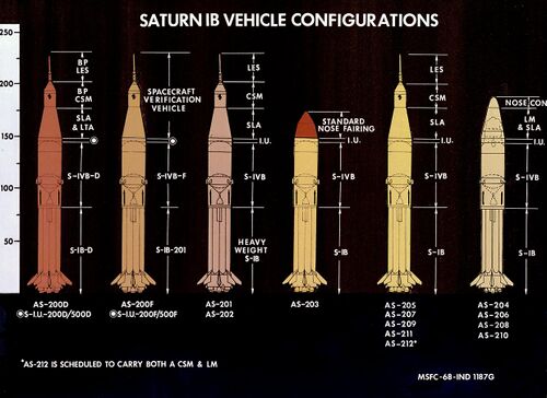 From Handwiki ![]() Three launch configurations of the Apollo Saturn IB rocket: no spacecraft (AS-203), command and service module (AS-202); and Lunar Module (Apollo 5) | |