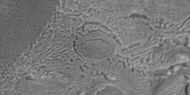 View of stress cracks and larger cracks that have been enlarged by sublimation (ice changing directly into gas) This may be the start of ribbed terrain.