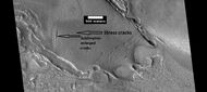 Evolution of ribbed terrain from stress cracks—cracks to the left eventually will enlarge and become ribbed terrain toward the right side of picture, as seen by HiRISE under HiWish program