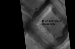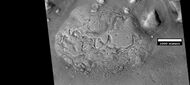 Enlargement of previous CTX image of mesa This image shows the cliff face and detail in the LDA. Image taken with HiRISE under HiWish program. Location is Ismenius Lacus quadrangle.
