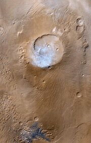 Gale Crater, in the northwestern part of the Aeolis quadrangle, is of special interest to geologists because it contains a 2–4 km (1.2–2.5 mi) high mound of layered sedimentary rocks, named "Mount Sharp" by NASA in honor of Robert P. Sharp (1911–2004), a planetary scientist of early Mars missions.[6][7][8] More recently, on 16 May 2012, "Mount Sharp" was officially named Aeolis Mons by the USGS and IAU.[9]