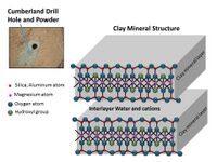 Many places on Mars show rocks arranged in layers. Sometimes the layers are of different colors. Light-toned rocks on Mars have been associated with hydrated minerals like sulfates. The Mars rover Opportunity examined such layers close-up with several instruments. Some layers are probably made up of fine particles because they seem to break up into find dust. Other layers break up into large boulders so they are probably much harder. Basalt, a volcanic rock, is thought to in the layers that form boulders. Basalt has been identified on Mars in many places. Instruments on orbiting spacecraft have detected clay (also called phyllosilicate) in some layers. Recent research with an orbiting near-infrared spectrometer, which reveals the types of minerals present based on the wavelengths of light they absorb, found evidence of layers of both clay and sulfates in Columbus crater.[186] This is exactly what would appear if a large lake had slowly evaporated.[187] Moreover, because some layers contained gypsum, a sulfate which forms in relatively fresh water, life could have formed in the crater.[188]