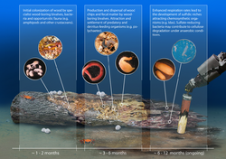 For the deep-sea ecosystem, the death of a whale is the most important event. A dead whale can bring hundreds of tons of organic matter to the bottom. Whale fall community progresses through three stages:[30]