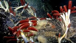 The first discovery of any deep-sea chemosynthetic community including higher animals was unexpectedly made at hydrothermal vents in the eastern Pacific Ocean during geological explorations (Corliss et al., 1979).[1] Two scientists, J. Corliss and J. van Andel, first witnessed dense chemosynthetic clam beds from the submersible DSV Alvin on February 17, 1977, after their unanticipated discovery using a remote camera sled two days before.[1]