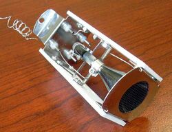 The word spectrograph had become part of the international scientific vocabulary by 1884.[2][3] Early spectrometry devices that measured the mass-to-charge ratio of ions were called mass spectrographs which consisted of instruments that recorded a spectrum of mass values on a photographic plate.[4][5] A mass spectroscope is similar to a mass spectrograph except that the beam of ions is directed onto a phosphor screen.[6] A mass spectroscope configuration was used in early instruments when it was desired that the effects of adjustments be quickly observed. Once the instrument was properly adjusted, a photographic plate was inserted and exposed. The term mass spectroscope continued to be used even though the direct illumination of a phosphor screen was replaced by indirect measurements with an oscilloscope.[7] The use of the term mass spectroscopy is now discouraged due to the possibility of confusion with light spectroscopy.[1][8] Mass spectrometry is often abbreviated as mass-spec or simply as MS.[1]