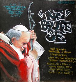 A number of quotes about the apparitions of Međugorje, in Bosnia and Herzegovina, have been attributed to John Paul II.[412] In 1998, when a certain German gathered various statements that were supposedly made by the pope and Cardinal Ratzinger, and then forwarded them to the Vatican in the form of a memorandum, Ratzinger responded in writing on 22 July 1998: "The only thing I can say regarding statements on Međugorje ascribed to the Holy Father and myself is that they are [frei erfunden] complete invention".[413] Similar claims were also rebuked by the Vatican's Secretariate of State.[414]