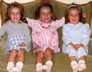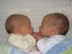 Quintuplets occur naturally in 1 in 55,000,000 births.[19] The first quintuplets known to survive infancy were the identical female Canadian Dionne quintuplets, born in 1934. Quintuplets are sometimes referred to as "quins" in the UK[20] and "quints" in North America.[21] A famous set of all-girl quintuplets are the Busby quints from the TV series OutDaughtered.