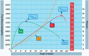 The lift coefficient of a fixed-wing aircraft varies with angle of attack. Increasing angle of attack is associated with increasing lift coefficient up to the maximum lift coefficient, after which lift coefficient decreases.[7]