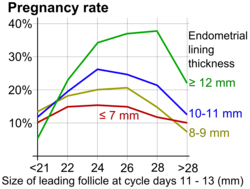 Follicle-stimulating hormone (FSH) is a peptide hormone which causes the primordial follicles in the ovaries to develop and to produce estrogen.[13] FSH levels are elevated early in the cycle of women who have lower ovarian reserve, because their follicles do not produce enough estrogen to inhibit FSH production,[14] therefore high levels early on in a woman's menstrual cycle can indicate lower ovarian reserve and lower likelihood of retrieving eggs for IVF. To test for ovarian reserve in women with infertility, FSH levels are measured from blood samples taken on day three of the menstrual cycle and compared to standards to determine the likelihood of pregnancy after IVF treatment.