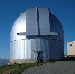 Microlensing Observations in Astrophysics (MOA) is a collaborative project between researchers in New Zealand[1] and Japan ,[2] led by Professor Yasushi Muraki of Nagoya University.[3] They use microlensing to observe dark matter, extra-solar planets, and stellar atmospheres from the Southern Hemisphere. The group concentrates especially on the detection and observation of gravitational microlensing events of high magnification, of order 100 or more, as these provide the greatest sensitivity to extrasolar planets. They work with other groups in Australia , the United States and elsewhere. Observations are conducted at New Zealand's Mt. John University Observatory using a 1.8 m (70.9 in) reflector telescope built for the project.[4]