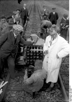 Von Opel, Sander and Valier were satisfied by RAK 1's performance, and in particular by the attracted positive publicity for the science of rocketry, but also the Opel company. Nevertheless, it was clear to the RAK program leadership, they had no plans to commercially produce rocket cars for end customers, the aim was the development and demonstration of a rocket-powered aircraft. The group continued their land projects and built RAK 2, designed from the ground up by Volkhart as a rocket car.[13] It was far larger and more streamlined than its predecessor. The RAK 2 was powered by 24 rockets packing 264 pounds of explosives. On May 23, 1928, Fritz von Opel himself demonstrated the car, Opel RAK 2, on the Avus Speedway near Berlin.[15][16] Prior to the start Professor Johann Schütte, Chairman of the Scientific Society of Aviation, and Fritz von Opel held prophetic speeches on the future of rocket-based aviation and spaceflight. After these introductory remarks, mechanics August Becker and Karl Treber then took the tarpaulin off the Opel RAK 2 and carefully pushed it to the start. Eventually the rockets were installed and connected to the ignition mechanism. Police cleared the AVUS track and von Opel drove the RAK 2 car to a record-setting speed of 238 km/h, successfully mastering the challenge of insufficient downforce from the wings for these velocities. The RAK 2 rockets were operational for a ride of circa three minutes, watched by 3000 spectators and world media, among them Fritz Lang, director of Metropolis and Woman in the Moon, world boxing champion Max Schmeling and many more sports and show business celebrities:[17]