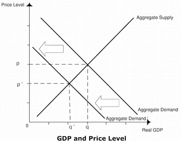 Similar to the reasoning in the previous section, as seen in Figure 4, a decrease in GDP leads to deflation. This can have negative or positive effects, depending on whether the nation's currency was overvalued or undervalued. Deflation can either be positive or negative in the long run as suggested by the effects section of the deflation article.