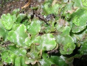 From the protonema grows the adult gametophyte, which is the persistent and independent stage in the life cycle. This stage usually grows as a thin rosette or ribbon-like thallus between one and five centimeters in diameter, and several layers of cells in thickness. It is green or yellow-green from the chlorophyll in its cells, or bluish-green when colonies of cyanobacteria grow inside the plant.