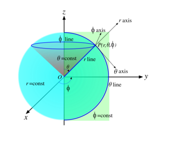 | Laplacian | [math]\displaystyle{ \nabla^2 \varphi = \cfrac{1}{\prod _j h_j}\frac{\partial }{\partial q^i}\left(\cfrac{\prod _j h_j}{h_i^2}\frac{\partial \varphi}{\partial q^i}\right) }[/math] | ||