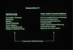 From Handwiki Community ophthalmology was described as a new discipline in medicine promoting eye health and blindness prevention through programs utilizing methodologies of public health, community medicine and ophthalmology in 1978. This new discipline was first proposed[1] by Dr. Patricia E. Bath in 1978 after observations of epidemics rates of preventable blindness among under-served populations in urban areas in the US as well as under-served populations in so called third-world countries.[2][3]