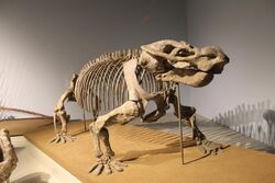 Evolving Planet follows the evolution of life on Earth over 4 billion years. The exhibit showcases fossils of single-celled organisms, Permian synapsids, dinosaurs, extinct mammals, and early hominoids.[28]The Field Museum's non-mammalian synapsid collection consists of over 1100 catalogued specimens, including 46 holotypes. The collection of basal synapsids includes 29 holotypes of caseid, ophiacodontid, edaphosaurid, varanopid, and sphenacodontid species - approximately 88% of catalogued specimens.[29]