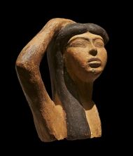 Annual ceremonies were performed in honor of Osiris[33] in various places across Egypt.[34] Evidences of which were discovered during underwater archaeological excavations of Franck Goddio and his team in the sunken city of Thonis-Heracleion.[35] These ceremonies were fertility rites which symbolised the resurrection of Osiris.[36] Recent scholars emphasize "the androgynous character of [Osiris'] fertility" clear from surviving material. For instance, Osiris' fertility has to come both from being castrated/cut-into-pieces and the reassembly by female Isis, whose embrace of her reassembled Osiris produces the perfect king, Horus.[37] Further, as attested by tomb-inscriptions, both women and men could syncretize (identify) with Osiris at their death, another set of evidence that underlines Osiris' androgynous nature.[38]