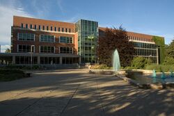 The College of Human Medicine graduates students with a Doctor of Medicine (M.D. degree) and is split into seven distinct campuses located in East Lansing, Kalamazoo, Flint, Saginaw, Marquette, Traverse City and Grand Rapids. Each campus is affiliated with local hospitals and other medical facilities professionals in the area.[182] For example, the Lansing campus includes Sparrow Hospital and McLaren–Greater Lansing Hospital.[183] The College of Human Medicine has recently gained attention for its expansion into the Grand Rapids area, with the new Secchia Center completed in the Fall of 2010, that is expected to fuel the growing medical industry in that region.[184]