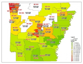 Northwest Arkansas was expected to go from six to seven Senate districts.[58]