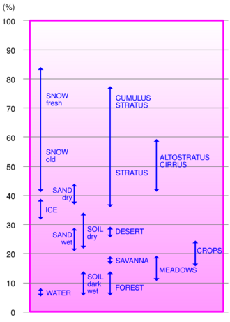 | Surface | Typical albedo |