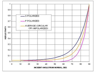 At the scale of the wavelength of light even wavy water is always smooth so the light is reflected in a locally specular manner (not diffusely). The glint of light off water is a commonplace effect of this. At small angles of incident light, waviness results in reduced reflectivity because of the steepness of the reflectivity-vs.-incident-angle curve and a locally increased average incident angle.[57]