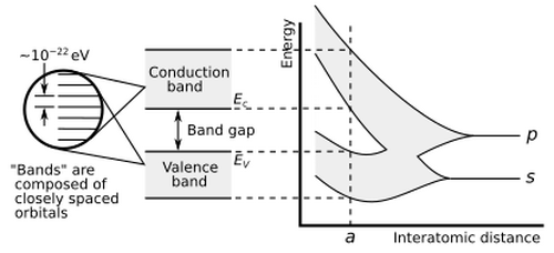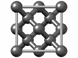 In group 14, both metallic and covalent bonding become possible. In a diamond crystal, covalent bonds between carbon atoms are strong, because they have a small atomic radius and thus the nucleus has more of a hold on the electrons. Therefore, the bonding orbitals that result are much lower in energy than the antibonding orbitals, and there is no overlap, so electrical conduction becomes impossible: carbon is a nonmetal. However, covalent bonding becomes weaker for larger atoms and the energy gap between the bonding and antibonding orbitals decreases. Therefore, silicon and germanium have smaller band gaps and are semiconductors at ambient conditions: electrons can cross the gap when thermally excited. (Boron is also a semiconductor at ambient conditions.) The band gap disappears in tin, so that tin and lead become metals.[151] As the temperature rises, all nonmetals develop some semiconducting properties, to a greater or lesser extent depending on the size of the band gap. Thus metals and nonmetals may be distinguished by the temperature dependence of their electrical conductivity: a metal's conductivity lowers as temperature rises (because thermal motion makes it more difficult for the electrons to flow freely), whereas a nonmetal's conductivity rises (as more electrons may be excited to cross the gap).[152]