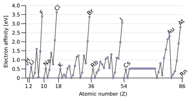 Electronegativity is generally measured on the Pauling scale, on which the most electronegative reactive atom (fluorine) is given electronegativity 4.0, and the least electronegative atom (caesium) is given electronegativity 0.79.[12] In fact neon is the most electronegative element, but the Pauling scale cannot measure its electronegativity because it does not form covalent bonds with most elements.[145]
