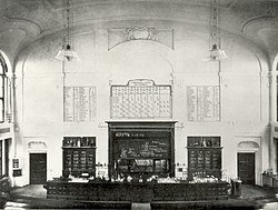 Circa 1925, the periodic table changed by shifting some Reihen (series) to the right, into an extra set of columns (groups). The original groups I–VII were repeated, distinguished by adding "A" and "B". Group VIII (with three columns) remained sole.