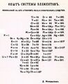 In 1869, Russian chemist Dmitri Mendeleev arranged 63 elements by increasing atomic weight in several columns, noting recurring chemical properties across them. It is sometimes said that he played "chemical solitaire" on long train journeys,[26] using cards with the symbols and the atomic weights of the known elements.[citation needed] Another possibility is that he was inspired in part by the periodicity of the Sanskrit alphabet, which was pointed out to him by his friend and linguist Otto von Böhtlingk.[27] Mendeleev used the trends he saw to suggest that atomic weights of some elements were incorrect, and accordingly changed their placements: for instance, he figured there was no place for a trivalent beryllium with the atomic weight of 14 in his work, and he cut both the atomic weight and valency of beryllium by a third, suggesting it was a divalent element with the atomic weight of 9.4. Mendeleev widely distributed printed broadsheets of the table to various chemists in Russia and abroad.[28][29][30] Mendeleev argued in 1869 there were seven types of highest oxides.[31][lower-alpha 1] Mendeleev continued to improve his ordering; in 1870, it gained a tabular shape, and each column was given its own highest oxide,[32] and in 1871, he further developed it and formulated what he termed the "law of periodicity".[33] Some changes also occurred with new revisions, with some elements changing positions.