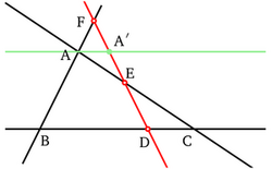 Methods dealing with spherical triangles were also known, particularly the method of Menelaus of Alexandria, who developed "Menelaus' theorem" to deal with spherical problems.[14][37] However, E. S. Kennedy points out that while it was possible in pre-Islamic mathematics to compute the magnitudes of a spherical figure, in principle, by use of the table of chords and Menelaus' theorem, the application of the theorem to spherical problems was very difficult in practice.[38] In order to observe holy days on the Islamic calendar in which timings were determined by phases of the moon, astronomers initially used Menelaus' method to calculate the place of the moon and stars, though this method proved to be clumsy and difficult. It involved setting up two intersecting right triangles; by applying Menelaus' theorem it was possible to solve one of the six sides, but only if the other five sides were known. To tell the time from the sun's altitude, for instance, repeated applications of Menelaus' theorem were required. For medieval Islamic astronomers, there was an obvious challenge to find a simpler trigonometric method.[39]