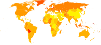 Globally, in 2018, the incidence of ovarian cancer was 6.6 per 100,000 and mortality was 3.9.[127] Globally, about 160,000 people died from ovarian cancer in 2010. This was an increase from 113,000 in 1990.[128] The number of new cases per year in Europe is approximately 5–15 per 100,000 women.[31] In Europe, Lithuania, Latvia, Ireland, Slovakia, and the Czech Republic have the highest incidences of ovarian cancer, whereas Portugal and Cyprus have the lowest incidences.[31] In 2008, the five-year survival rate was 44%. This has increased since 1977 when the survival rate was 36%.[118]