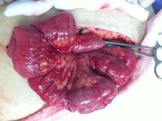 Complications of ovarian cancer can include spread of the cancer to other organs, progressive function loss of various organs, ascites, and intestinal obstructions, which can be fatal. Intestinal obstructions in multiple sites are the most common proximate cause of death.[28] Intestinal obstruction in ovarian cancer can either be a true obstruction, where tumor blocks the intestinal lumen, or a pseudo-obstruction, when tumor prevents normal peristalsis.[124] Continuous accumulation of ascites can be treated by placing a drain that can be self-drained.[28]