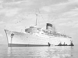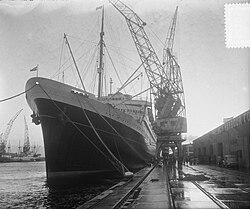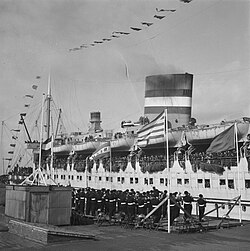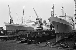 From Handwiki ![]() Nieuw Amsterdam at Hook of Holland in 1949