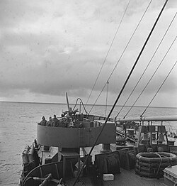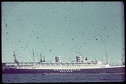On December 8 she left Singapore, carrying 3,800 Dutch citizens, including 1,200 children, to be repatriated to the Netherlands.[1][65] The children were very weak after being held in Japanese internment camps. Measles broke out aboard ship, and many of the children died. Girls aged 17 and 18 volunteered as nurses, but they became infected and died. The dead were buried at sea, and the funerals were held silently, at night, in an attempt to avoid causing panic.[65] The ship went via Colombo and the Suez Canal to Southampton, where she arrived on January 1, 1946.[59]