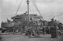 On September 5 Nieuw Amsterdam left Hoboken.[27] She was due in Rotterdam on September 13, but the United Kingdom and France were blockading Germany, so on September 11 the Royal Navy arrested her in the English Channel.[28] She joined other ships detained at The Downs anchorage, waiting to be inspected for contraband.[29] The Navy found in her cargo a consignment of 1,500 tons of copper, which one of her passengers had bought in the USA for Germany. The Dutch government agreed to assume title of the copper, to avoid the British seizing it. The Navy arrested two tourist class passengers as alleged German spies, and interned 34 German stewards and crew members. One of the alleged spies tried to kill himself.[28] The ship was released on September 14 to complete her voyage.[30]