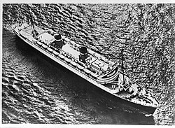 On December 23, 1939 she left Hoboken carrying 600 passengers on a cruise to Havana and Miami.[40] Her decorations included a Christmas tree 25 feet (8 m) high in her Grand Hall.[41] She got back to Hoboken on January 1, 1940.[42] On January 3 she left Hoboken for Saint John, U.S. Virgin Islands, Curaçao, and La Guaira.[43] She got back to Hoboken in January 11.[44]