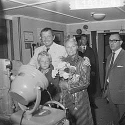 For 1953, Nieuw Amsterdam's schedule included a 36-day Rotary cruise to the western Mediterranean, starting from Hoboken on April 23. One of her eastbound transatlantic crossings was scheduled to make an additional intermediate call at Boston on August 18, to embark a pilgrimage to Ireland led by Archbishop Richard Cushing.[111] Some of her transatlantic crossings were almost fully-booked. On November 13, 1953 she landed 1,145 passengers at Hoboken, including the Hungarian ballet-dancers István Rabovsky and Nora Kovach, who had defected via West Berlin that May.[112]