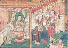 Returning in 242, Mani presented himself to Shapur I, to whom he dedicated his only work written in Persian, known as the Shabuhragan. Shapur was not converted to Manichaeism and remained Zoroastrian, but he favored Mani's teachings, which mixed Christianity, Buddhism and Zoroastrianism, and took him into his court.[8][28] Mani is said to have performed miracles, including levitation, teleporting and healing, which helped him to gain converts in the Iranian elite. He was also famed as a painter.[8]