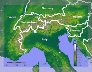 ![]() The Alps seen from outer space, taken from the International Space Station | |
