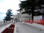 City of San Marino is the top terminus of the Funivia di San Marino, an aerial cablecar system that connects the city to Borgo Maggiore.[3] Running every fifteen minutes, the two-minute ride is renowned for its paronamic views over San Marino, the Province of Rimini, and the Adriatic Sea.[3][4] The City of San Marino terminus is located at the turn of Contrada Omagnano with Contrada del Pianello, at the historic city centre's northern end, next to the Tourism Secretariat and less than 200 metres (660 feet) from the Basilica of San Marino and the Piazza della Libertà.[5]