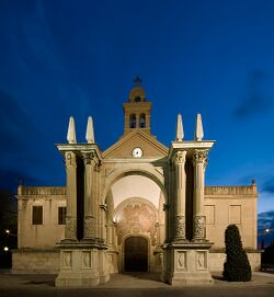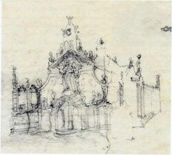 Despite being very possibly his birthplace, Reus does not preserve works of Gaudí, who would be one of its most illustrious sons. Although the architect presented a project of restoration and reform of the façade of the sanctuary of Misericordia as from the fervor awakened by the procession of 1900 and the ceremony of canonical coronation in 1904. This building of the 17th century was erected in the place where tradition places the appearance of the Virgin to Isabel Besora. However, for reasons not fully clarified, apparently by litigation with neighbours, the project was left out.[8] Finally, the municipal architect began the work in 1915, although only the basement was made.[9] In the Museu Comarcal de Reus (Reus regional museum) remain two sketches that Gaudí made of his project. In them they can be seen a baroque facade according to contemporary works such as Casa Calvet, and the treatment of the environment that included a monumental rosary along the access avenue.[10]