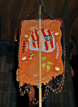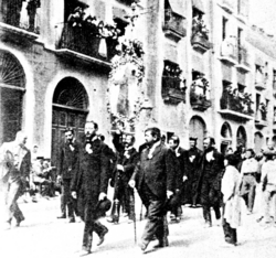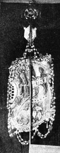 The banner of Misericordia (Mercy) is a work of the Catalan architect Antoni Gaudí projected for the procession to the Sanctuary of Misericordia in Reus of the reusians residing in Barcelona as one of the acts for the 1900 Holy Year.[1] It is known by the two front and back photographs published in the Semanario Católico de Reus (Reus Catholic Weekly magazine) in July of that year.[2] It included another photograph of the procession in which Gaudí is seen as part of a large group of pilgrims and the banner being carried by one of them.