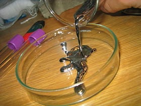 From the mid-eighteenth to the mid-nineteenth centuries, a process called "carroting" was used in the making of felt hats. Animal skins were rinsed in an orange solution of the mercury compound mercuric nitrate (Hg(NO3)2·2H2O).[1] This process separated the fur from the pelt and matted it together.