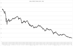 The Wall Street Crash of 1929, also known as the Great Crash, the Crash of 29, or Black Tuesday, was a major American stock market crash that occurred in the autumn of 1929. It started in September and ended in mid-November, when share prices on the New York Stock Exchange (NYSE) collapsed. The pivotal role of the 1920s' high-flying bull market and the subsequent catastrophic collapse of the NYSE in late 1929 is often highlighted in explanations of the causes of the worldwide Great Depression.