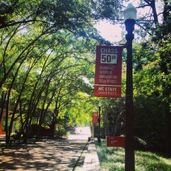 In March 2008, NC State launched the University Sustainability Office in order to address environmental concerns on campus.[43] The university has established a commitment to reduce its annual energy consumption per square foot by at least 4% over a 10-year period.[44] In addition, the university has surpassed the Executive Order 156 goal of diverting 40 percent of their solid waste stream from the landfill through a variety of campus reuse and recycling programs.[45] NC State incorporates locally grown, organic, and free range foods into dining service meals at several events such as Earth Week's EarthFest and the annual All Carolinas Meal with foods local to the Carolinas.[46] Examinations of the campus' sustainability practices by the Sustainable Endowments Institute resulted in a "B+" grade for NC State on the College Sustainability Report Card 2011. In 2013 the University Housing department agreed to incorporate a new living and learning community known as "EcoVillage." Members of EcoVillage were originally housed in Bragaw Residence Hall on West Campus. Today, EcoVillage is housed in the adjacent Lee Residence Hall. Members of EcoVillage complete numerous volunteer based sustainability trips every semester and attend various discussions about how to improve and further the university's reach into sustainability.[47]