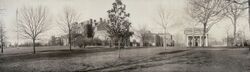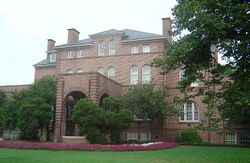 The North Carolina General Assembly founded NC State on March 7, 1887, as a land-grant college under the name "North Carolina College of Agriculture and Mechanic Arts," or "North Carolina A&M" for short.[13] In the segregated system, it was open only to white students. As a land-grant college, North Carolina A&M would provide a liberal and practical education while focusing on military tactics, agriculture, and the mechanical arts without excluding classical studies.[14] Since its founding, the university has maintained these objectives while building on them.[9] After opening in 1889, North Carolina A&M saw its enrollment fluctuate and its mandate expand. In 1917, it changed its name to "North Carolina State College of Agriculture and Engineering"—or "North Carolina State" for short.[15] During the Great Depression, the North Carolina state government, under Governor O. Max Gardner, administratively combined the University of North Carolina, the Woman's College (now the University of North Carolina at Greensboro), and NC State. This conglomeration became the University of North Carolina in 1931.[16] In 1937 Blake R. Van Leer joined as Dean and started the graduate program for engineering.[17] In 1942, Van Leer successfully encouraged NC State's first women to pursue an engineering degree, 4-5 women would enroll and the first women graduated in 1941. One of his students Katharine Stinson became the Federal Aviation Administration's first female engineer.[18][19] Following World War II, the university grew and developed. The G.I. Bill enabled thousands of veterans to attend college, and enrollment shot past the 5,000 mark in 1947.