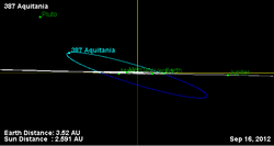 ↑"387 Aquitania (1894 AZ)". Minor Planet Center. https://www.minorplanetcenter.net/db_search/show_object?object_id=387.