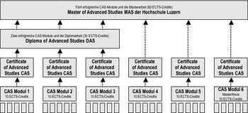 The organization of the study-programmes will be implemented through various modules, the academic qualifications are for the individual modules the CAS-degree (Certificate of Advanced Studies) and above all a "Master of Advanced Studies (MAS) in sustainable building." The individual modules are: